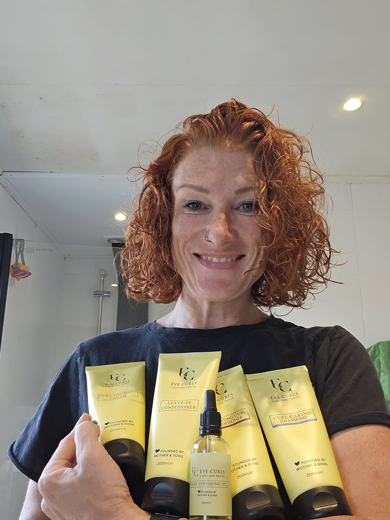 Na mijn zwangerschap, met de nodige medische rompslomp, gaf mijn haar het opnieuw op. Ik knipte het kort… echt kort. Gelukkig kreeg het weer lengte, en toen kwam er een advertentie van Eve Curls voorbij. Ik twijfelde: wel bestellen, niet bestellen? Ik had al zoveel geprobeerd. Maar uiteindelijk waagde ik het, en ik heb er geen moment spijt van gehad.